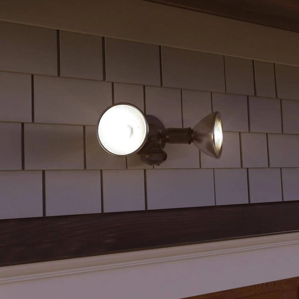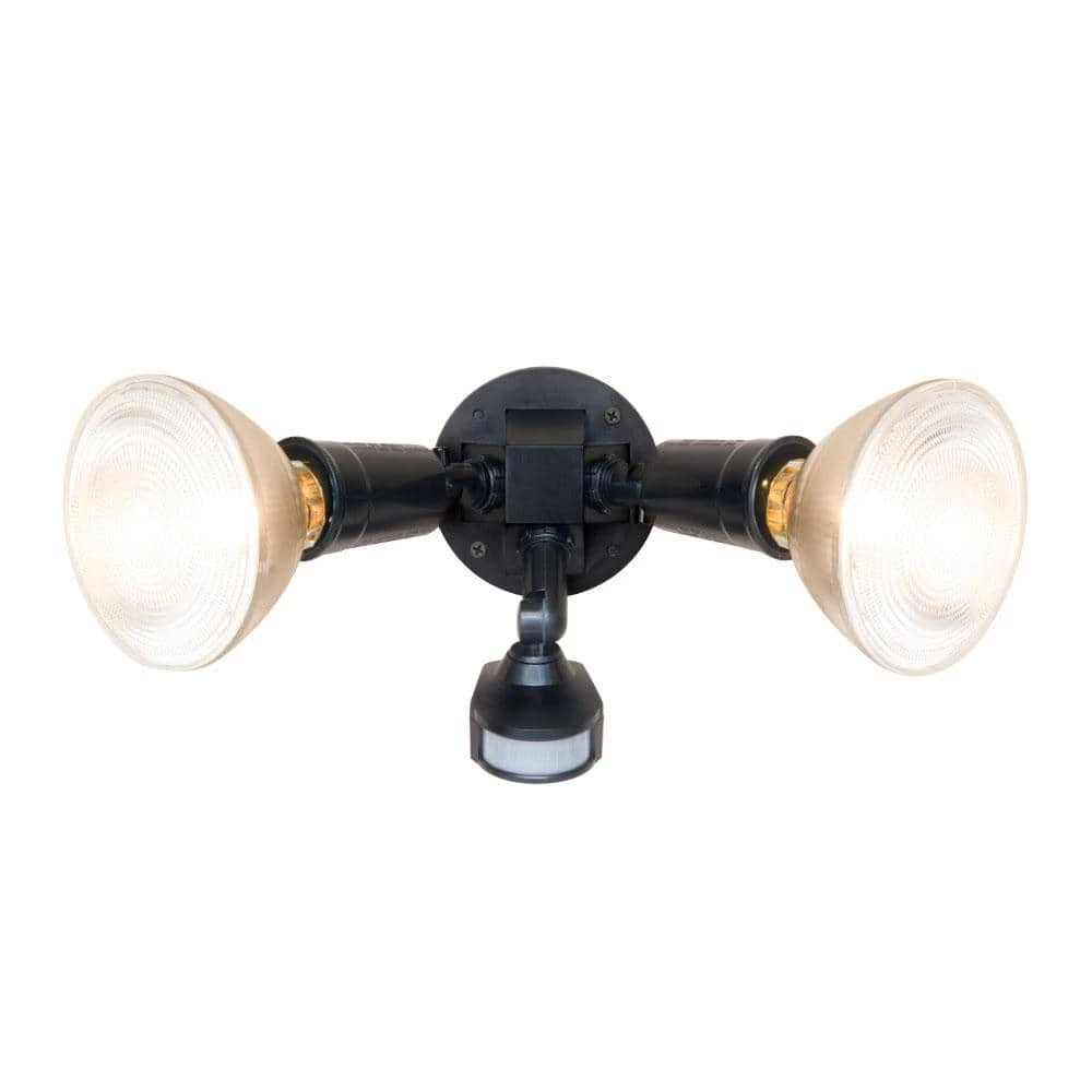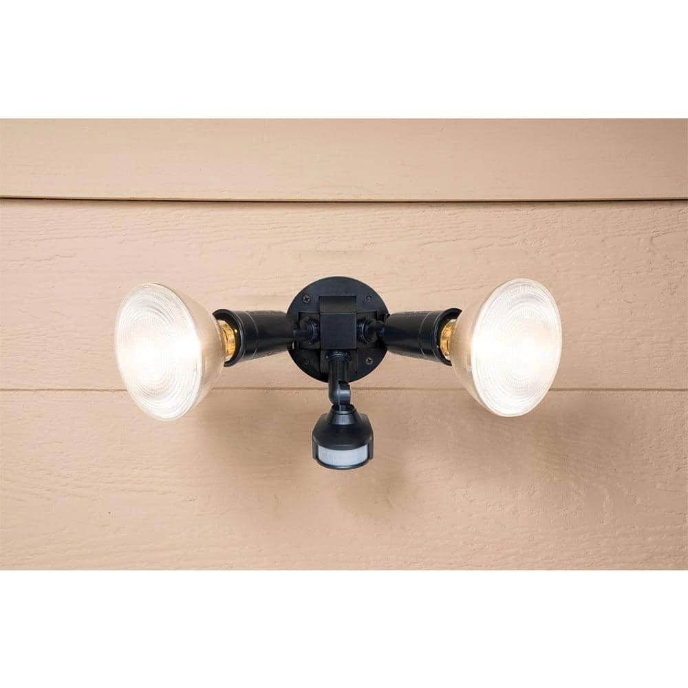 The All-Pro 110° Motion sensor, 300-Watt PAR security floodlight. The fixture turns lights ON automatically when motion is detected and OFF after a pre-selected time delay. It is made from durable plastic construction and is perfect for wall or eave-mount installation.
