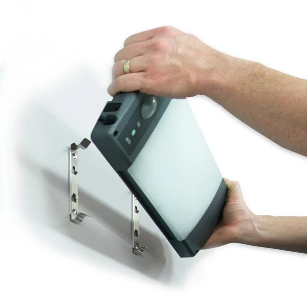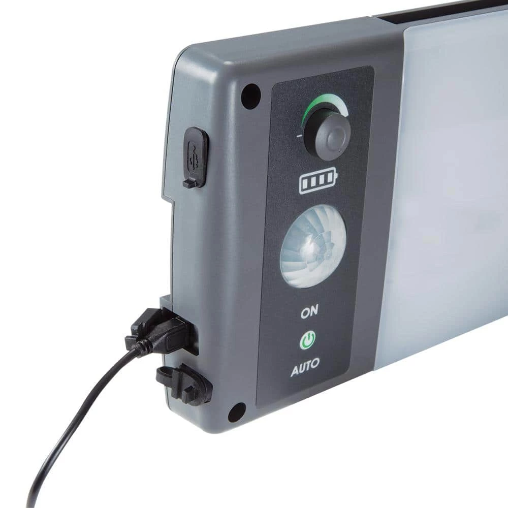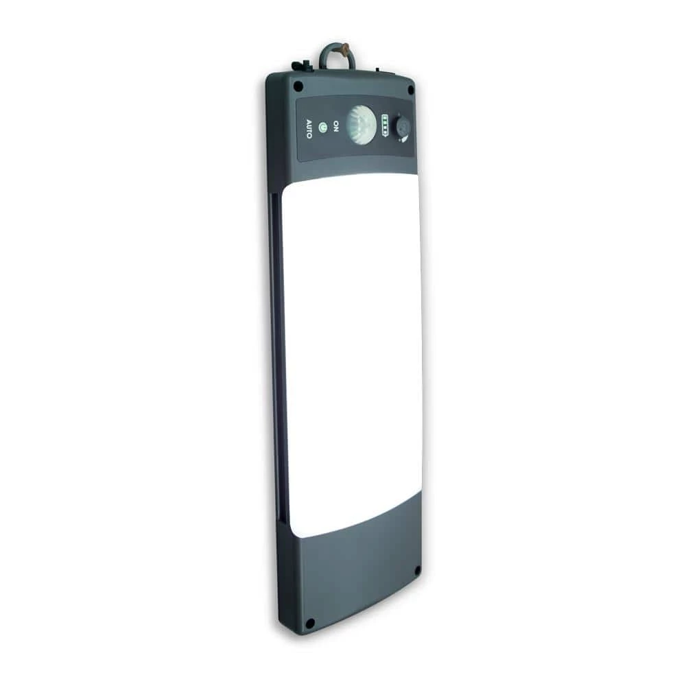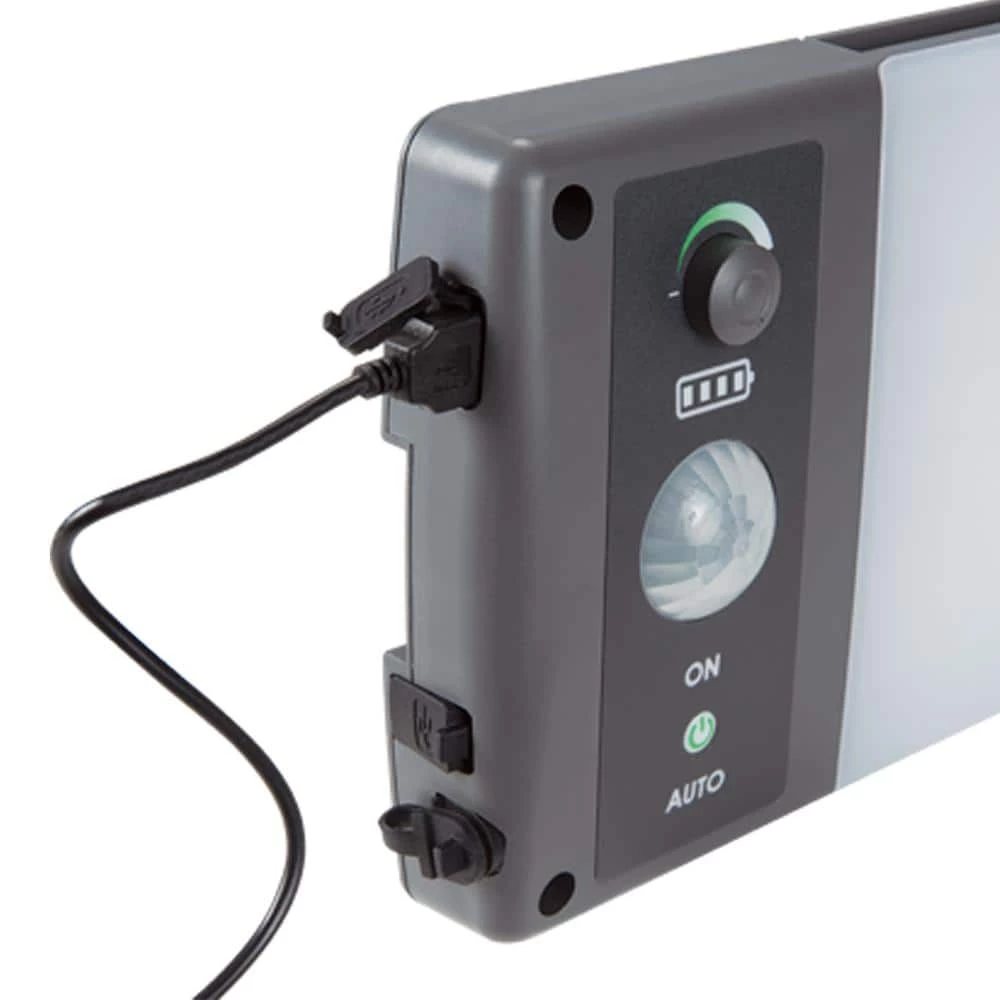 The HALO Diverge off-grid lighting system is a portable solution, utilizing rechargeable lithium-ion battery technology and multiple charging options for a wide range of applications. Delivering an impressive 2400 Lumens at full charge, this LED solar light offers an integrated dimming control, 360° motion sensor, polycrystalline solar panel with 20 ft. cord and two USB interfaces for charging purposes. Suitable for storage, marine, remote location and area lighting where 120-Volt wiring is not available.