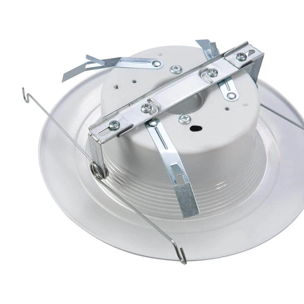 Install an efficient lighting solution when remodeling your home with this 5-in./6-in. HALO LED recessed retrofit trim module. The 90 CRI rating with 3000K CCT emits a neutral, high-quality glow, while the heat sink keeps this lighting fixture from getting too hot for reliable performance. This dimmable HALO LED recessed retrofit trim module is damp-location certified and features a non-screw base with dual mounting options for easy installation.