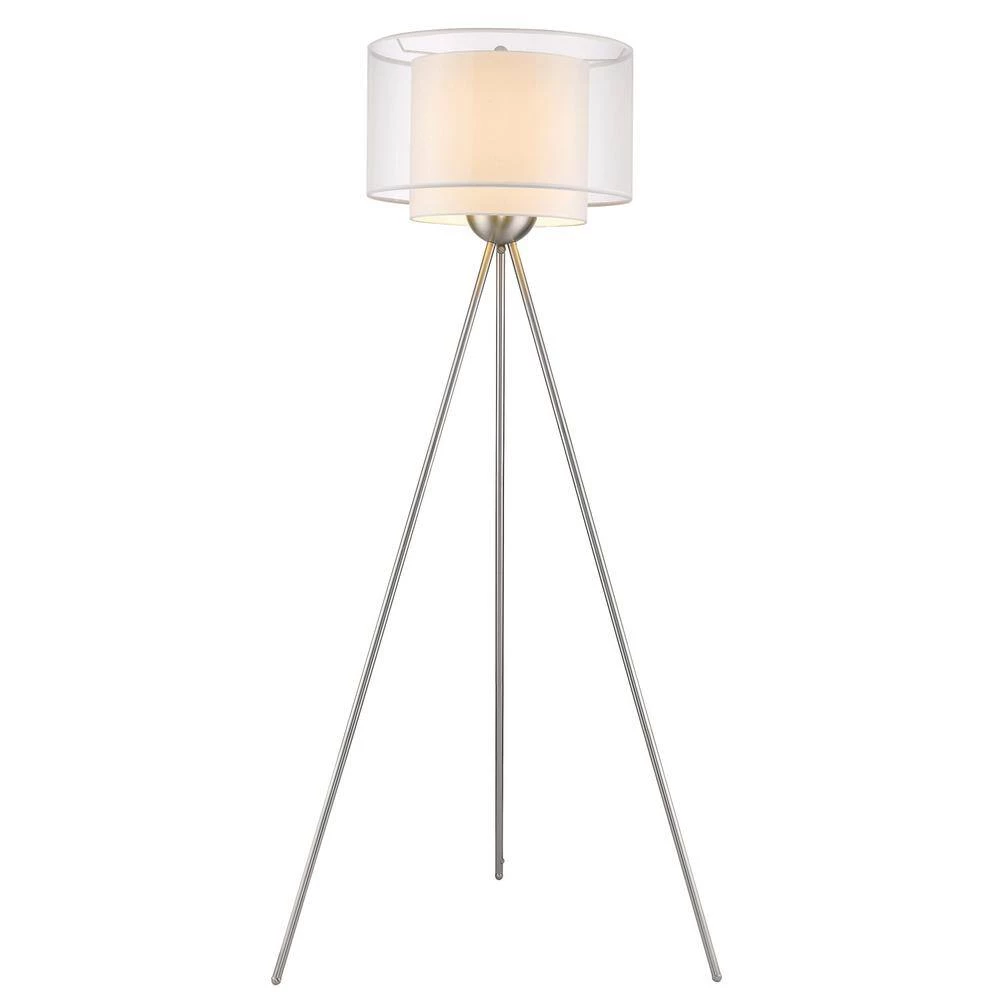 Enhance The Look Of Your Space With The Brella Collection Of Interior Lighting. Modern Styling Is Softened With A Fabric Two-Tier Shade. The Brella Floor Lamp Features A Tripod Base, Sheer Snow/Shantung Two Tier Shade Finished In Brushed Nickel.