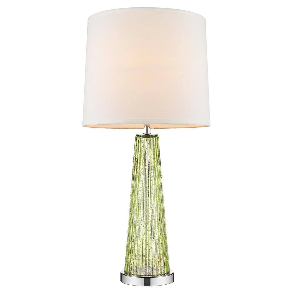 Chiara 29.75 in. 1-Light Apple Green Glass And Polished Chrome Table Lamp With Off-White Shantung Shade by Trend Lighting