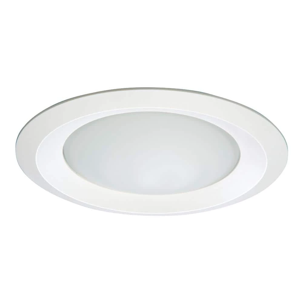 The E26 series shower light is a low profile trim with a frost dome lens. It is wet location rated for use in shower applications. The torsion spring retention holds the trim tight to the ceiling.