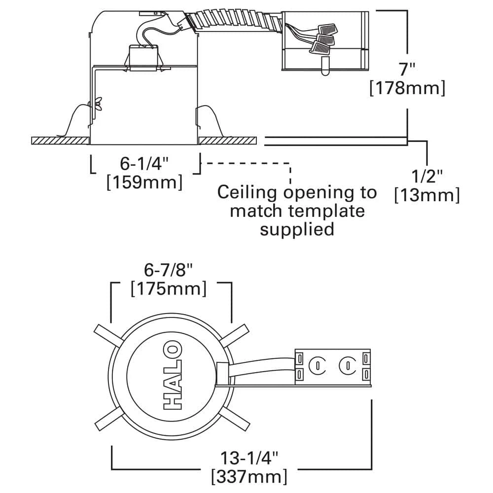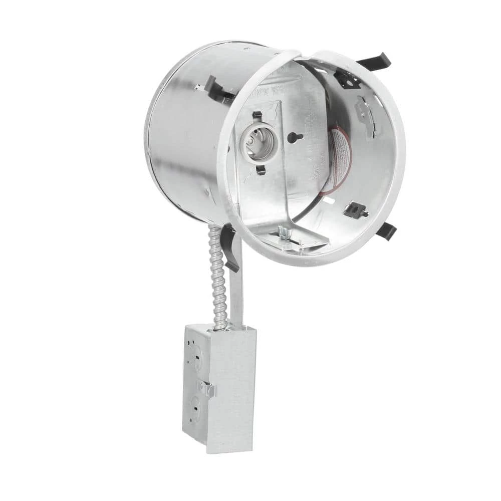 The H7RICT is an insulated ceiling housing built from aluminum and designed for remodeling applications where the housing will be in direct contact with ceiling insulation. The built in integral thermal protector provides positive protection against overlapping. This housing also features an adjustable socket bracket to assure proper and consistent lamp positioning. The housing’s 7-1/2 in. H allows for use in 2 in. x 8 in. joist construction and an integral flange secures the fixture against the ceiling. 4 remodel clips secure the housing and accommodate ceiling thickness from 1/2 in. to 5/8 in. UL approved and CSA certified, the H7RICT simplifies any remodeling project.