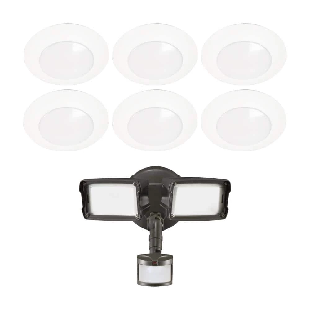 The Halo HLC6 Series is a 6-piece bulk pack of surface mount downlights with easy install-from-below mounting. The HLC is designed for use in new construction, remodel and retrofit installation, without needing a housing – it can wire directly into a j-box. The 3000K color temperature provides your room with a soft white light that is great for any occasion. The Defiant Outdoor Security series is designed to provide superior security with the sustainability of LED Technology. Designed for performance with a refined look, the durable die-cast aluminum construction and innovative LED design come in a full range of styles and lumen outputs to match all outdoor security.