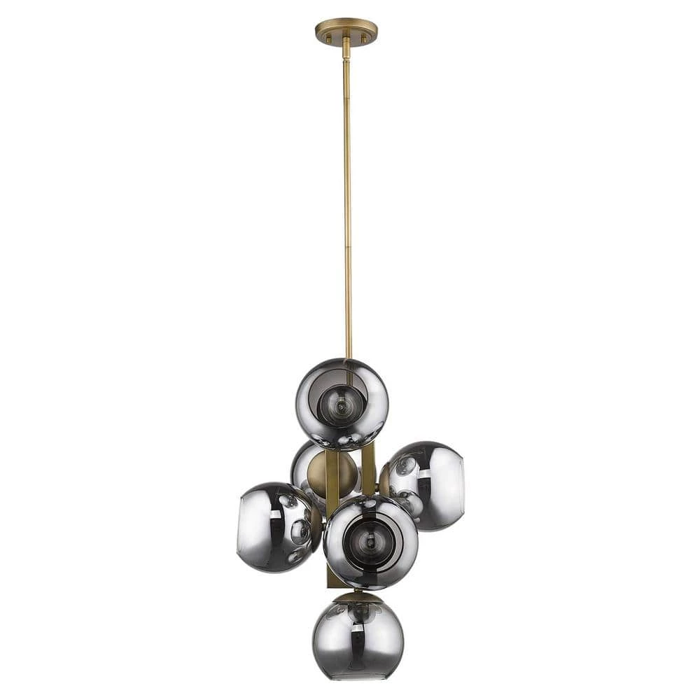 Add mid-century modern style to your home with the Lunette collection of lighting. An aged brass finish combines beautifully with gorgeous, smoked handblown glass shades. Lunette will pair nicely with bold color palettes.