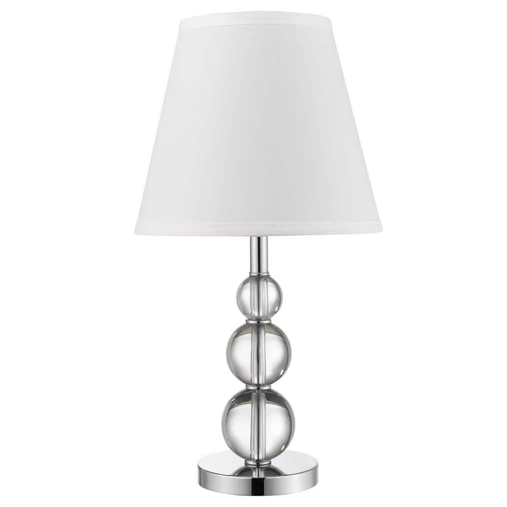 Add A Dash Of Glamour To Your Space With The Palla Table Lamp. This Gorgeous Table Lamp Features A Column Of Ultra Clear Stacked Crystal Balls With Polished Chrome Accents. The White Linen Shade Complements The Overall Design Of The Lamp.