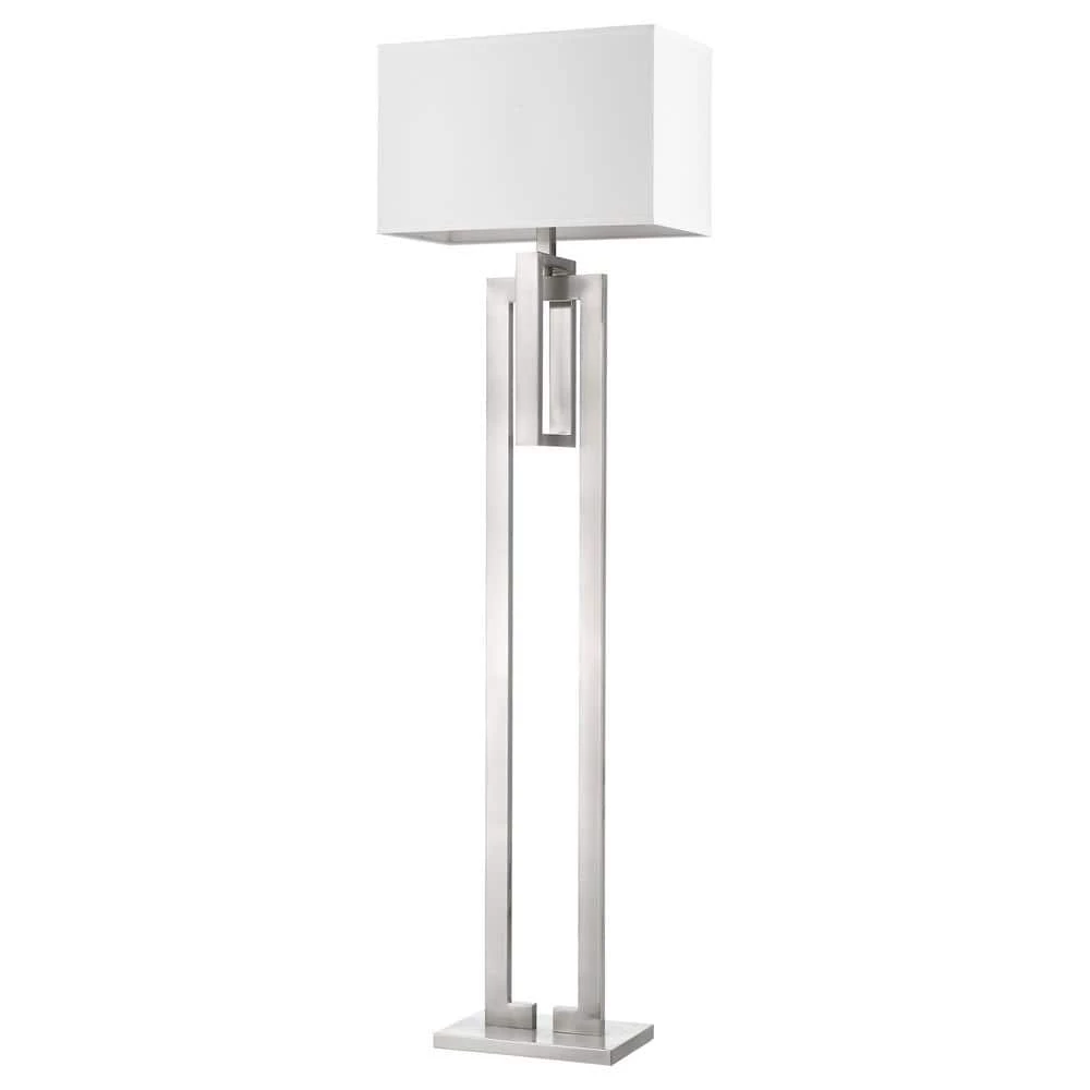 As The Name Implies, Precision Features An Interlocking Base Of Rectangular Shapes. Its Brushed Nickel Finish Is Complemented By An Elegant, Ivory Shantung Shade That Will Work Well With Any Interior. Clean Crisp Design.
