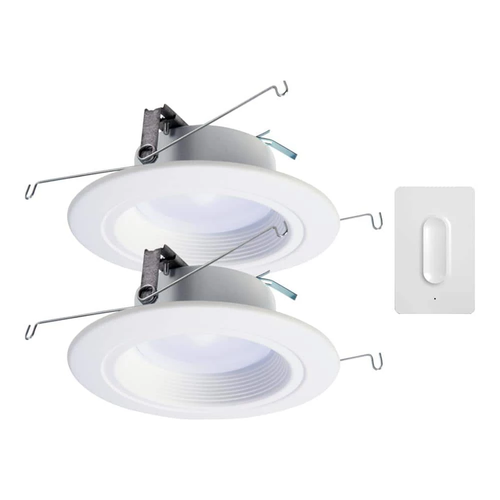 RL 5 & 6in. White Bluetooth Smart Integrated LED Recessed Light Trim, Tunable CCT 2-Pack & Smart Bluetooth Dimmer Switch by Halo