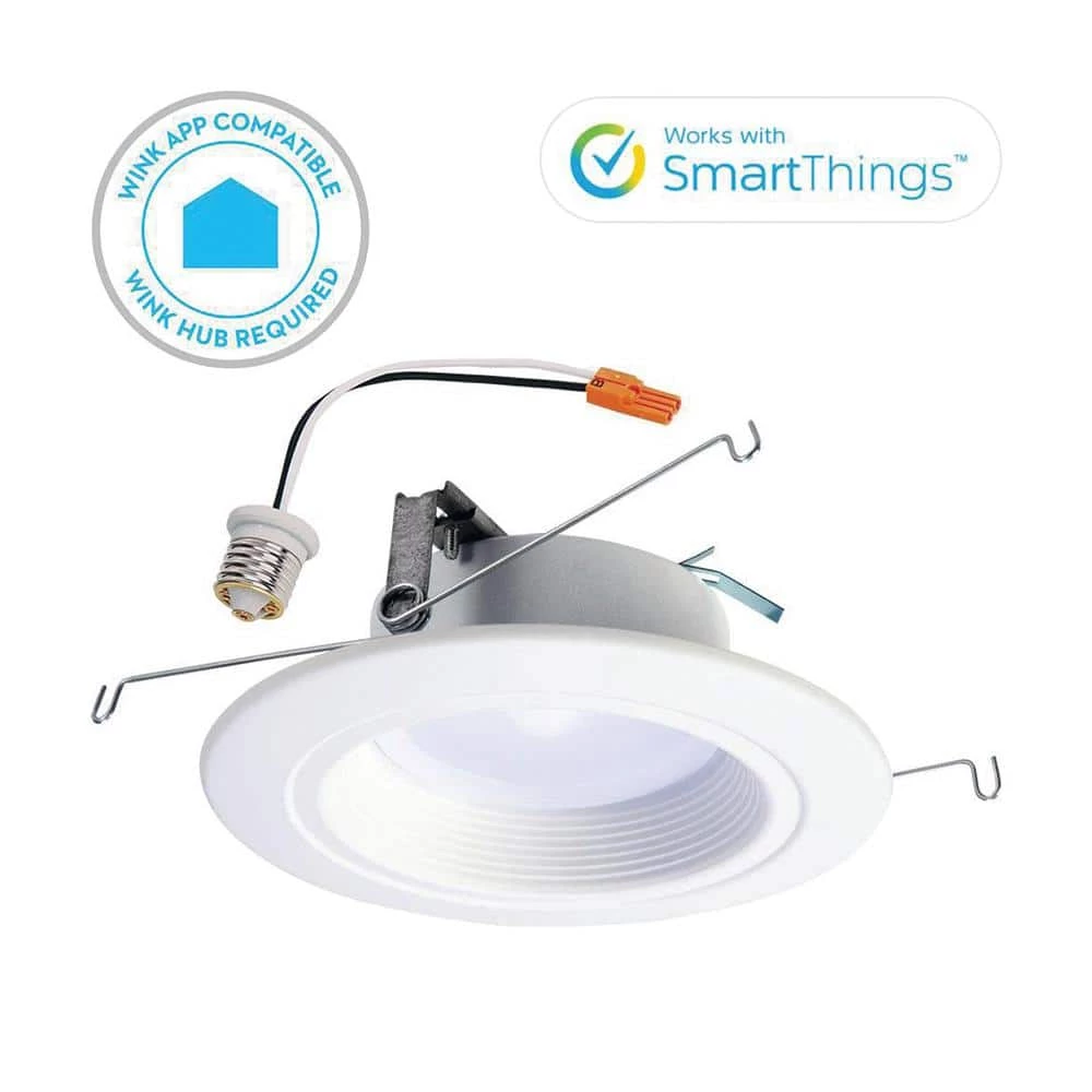 You have finally found a and convenient way to control your lights from anywhere. The Halo RL56 Zigbee Smart LED Downlight is a wireless, app-controlled light fixture that replaces a 65-Watt incandescent light bulb and trim. Emitting 685 Lumens (light output) and only using 9.5-Watt of electricity, use of the RL56 Zigbee will save you up to $350 in Energy Savings over the life of the fixture. It’s so great, ENERGY STAR has certified it. Easy to install LED Retrofit Downlight, you can connect this light into your recessed housing (can) with no problem and you won’t have to replace it for over 50,000 hours (or 22 years). This downlight comes with an Edison-base connector (screw-in base), to retrofit your existing housing. Also, this downlight comes with both torsion spring and friction blade (clip) attachment methods, so you can insert this light fixture in whichever way you’d prefer. Want to create a warmer feeling in your room. No problem, change the color temperature directly from your app, ranging from 2700K – 5000K (warm white to cool blue). Optimal for ceilings between 8 ft. – 10 ft. this very wide flood light can also be used in wet or damp locations (i.e. above your bathtub, shower areas or covered outdoor patio). From entertaining friends for an evening cocktail party to hosting an afternoon brunch, simply use your app to adjust the dim level of your lights (all the way down to 5%).