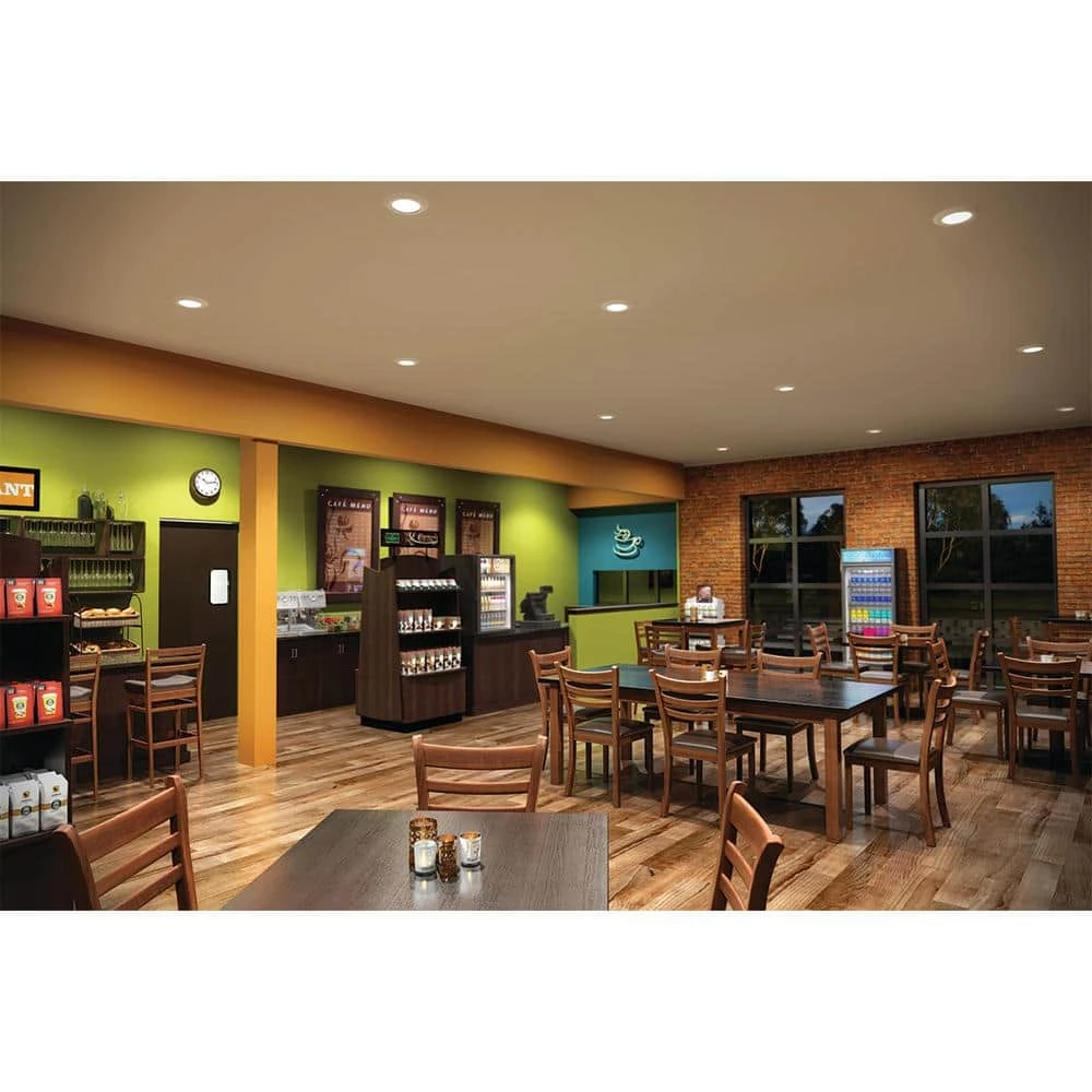 The Halo Surface LED Downlight (SLD6) is an ultra-low profile surface mounting luminaire with the performance and look of a traditional downlight. Equipped with 5 color temperature settings ranging from soft (2700K) to daylight (5000K), this SLD6 (6 in.) is designed for installation in many standard and fire-rated 3-1/2 in. and 4 in. round or octagon junction boxes. Supply wire adapter with LED quick wiring connector included. Suitable for residential or commercial installations. Ideal for closets, storage areas, attics and basements.