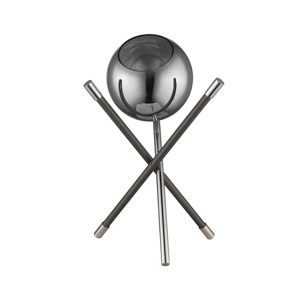 This spunky table lamp will be the perfect addition to any home office or bedroom nightstand. It features a tripod design in a black and polished nickel finish. A single smoked glass globe completes the look.